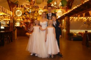 We hebben een feest gegeven in de Blokhut in Putten, een super leuke locatie. We hadden een DJ die leuke plaatjes draaide. Er waren gasten die graag dansten, dus het werd een geweldig feest! De kinderen van mijn broer waren destijds onze bruidskinderen, onze kinderen konden nu de bruidsjurken aan, dus dat is extra speciaal.