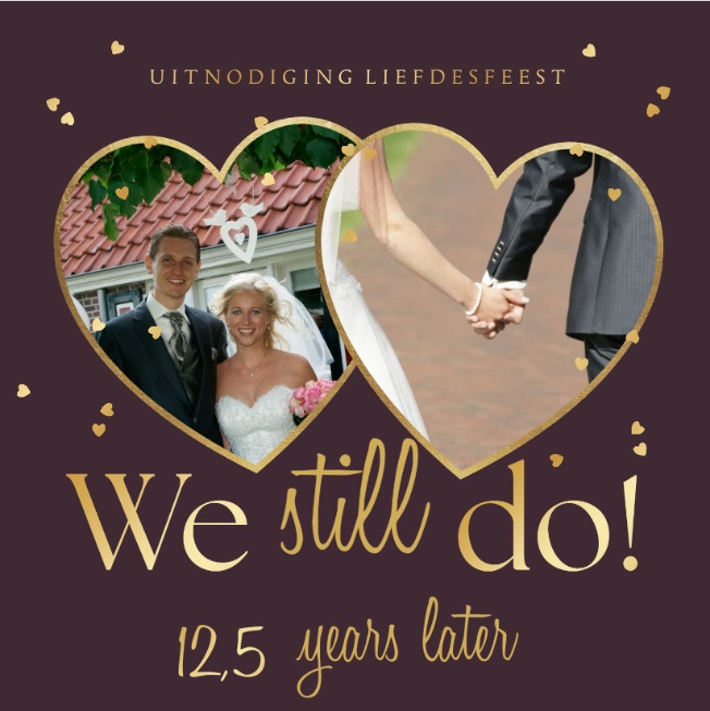 We hebben een feest gegeven in de Blokhut in Putten, een super leuke locatie. We hadden een DJ die leuke plaatjes draaide. Er waren gasten die graag dansten, dus het werd een geweldig feest! De kinderen van mijn broer waren destijds onze bruidskinderen, onze kinderen konden nu de bruidsjurken aan, dus dat is extra speciaal.