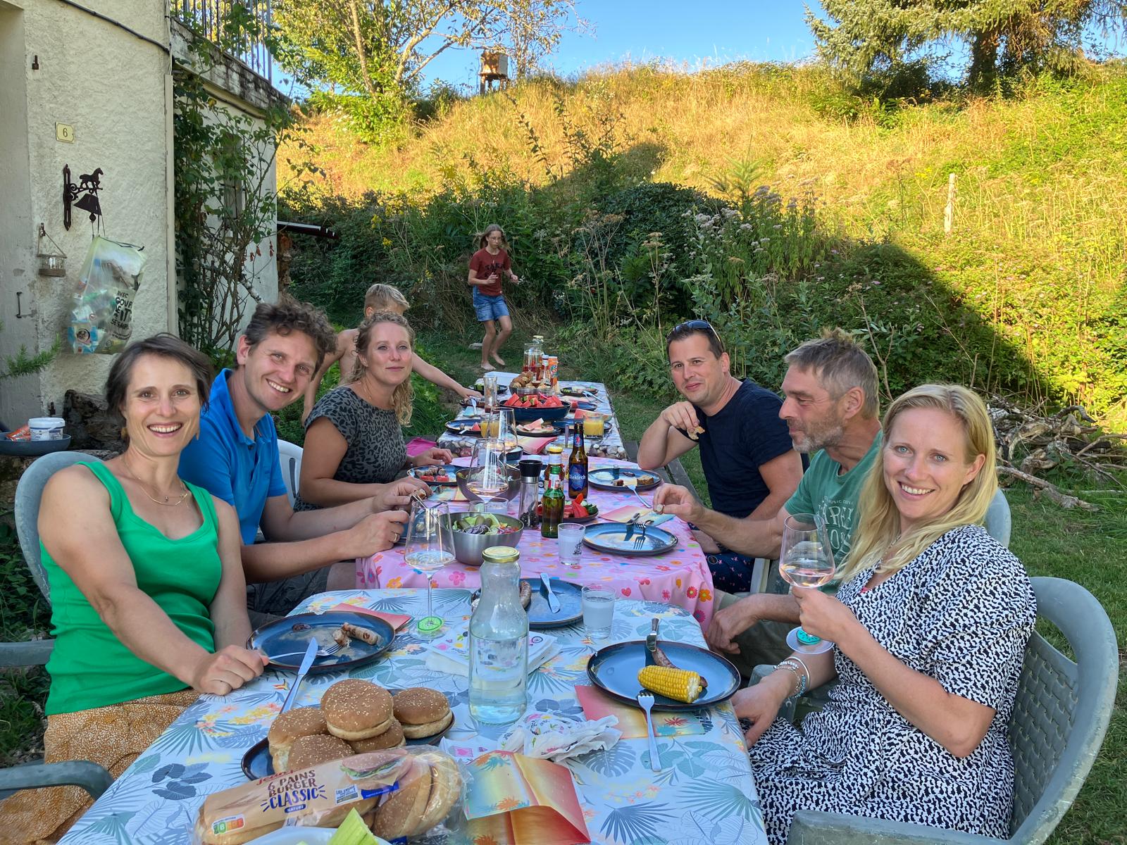 Prachtig uitzicht, op de Mont Beuvray. We kunnen vanaf hier in 8 km naar ons huis lopen. Met de auto doe je er een half uur over. Dus ja leuk om te wandelen. Maar met de kinderen nemen we de auto! We hebben ontzettend veel leuke dingen gedaan. Daarna komen Opa en Oma Blom op bezoek, zij komen met de camper. Na twee dagen gaan zij verder; op fietsvakantie; en wij gaan met de camper op pad. De eerste paar dagen reizen we nog met hen mee, dan ontmoeten we elkaar ’s avonds op een camping. De derde dag rijden we ’s avonds door naar onze bestemming; het meer van Annecy. Ik krijg van de camper altijd een vakantiegevoel. Ik had er ook zo’n in om gewoon lekker weg te zijn. Alles is het afgelopen half jaar anders. We doen zoveel nieuwe indrukken op. En hoe leuk alle visite ook is; het is ook super leuk om lekker vakantie te vieren met ons eigen gezin. De camper geeft zo’n gevoel van vrijheid en het was heel fijn om vanuit deze veilige, vertrouwde plek ook even te kunnen landen. Wat is er het afgelopen half jaar veel gebeurd. Hoe voelt het allemaal. Hoe gaan we verder. We merken dat we het in de vakantie nog heel fijn vinden om naar Nederland te gaan. Het contact met vriendjes en vriendinnetjes in Nederland is nog heel goed. Als ze dan weer samen zijn, is het weer als vanouds. Dit zorgt er tegelijkertijd ook voor dat het steeds weer lastig is om weg te gaan. Anderzijds beginnen we hier ook steeds meer mensen te kennen. We zijn nog niet klaar met dit avontuur, we beginnen het gevoel te krijgen, dat het te kort is, om hier 1 jaar te wonen.. Want als we het bij 1 jaar laten, dan moeten we nu al weer gaan focussen op hoe nu verder? We wilden graag alle seizoenen meemaken. We begonnen in de winter, daarna werd het lente en nu is het zomer.