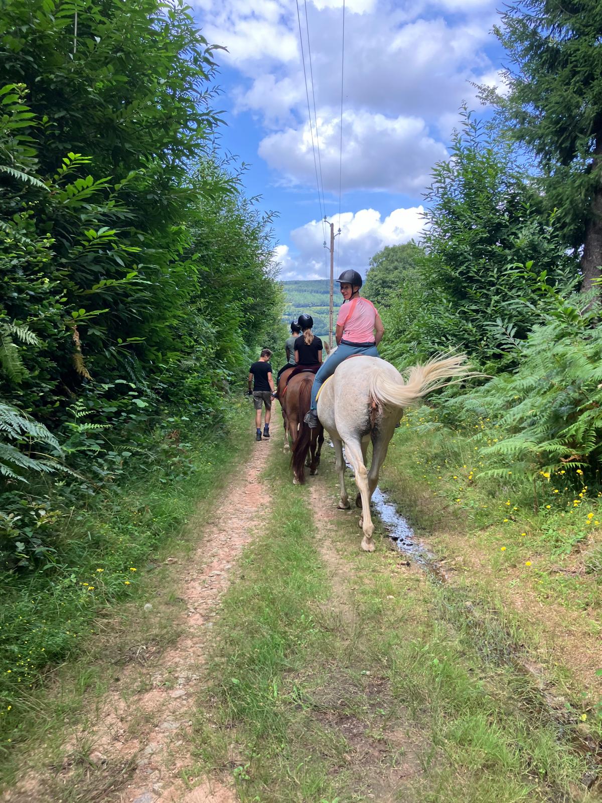 Met zijn allen lekker buiten aan het ontbijt! En ik ga natuurlijk naast me zus zitten! Lekkere franse worst, stokbrood en croissantjes, met heerlijke Nederlandse hagelslag en muisjes. Het beste van twee werelden. Na het ontbijt gaan we paardrijden! We hadden al wel in de bak gereden. Maar een langere buitenrit hadden we nog niet gemaakt. Mijn zus en Julia hebben ook veel ervaring met paardrijden dus fijn om op deze manier te kijken hoe de paarden reageren. Ze zijn super braaf en het gaat goed. Het is erg leuk. ’s Middags gaan we lekker zwemmen, want je krijgt het er wel warm van.