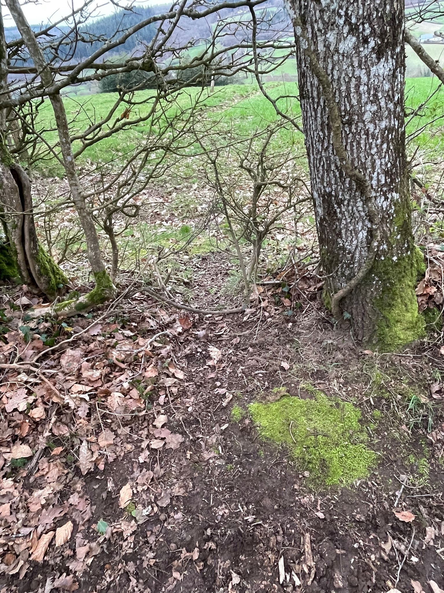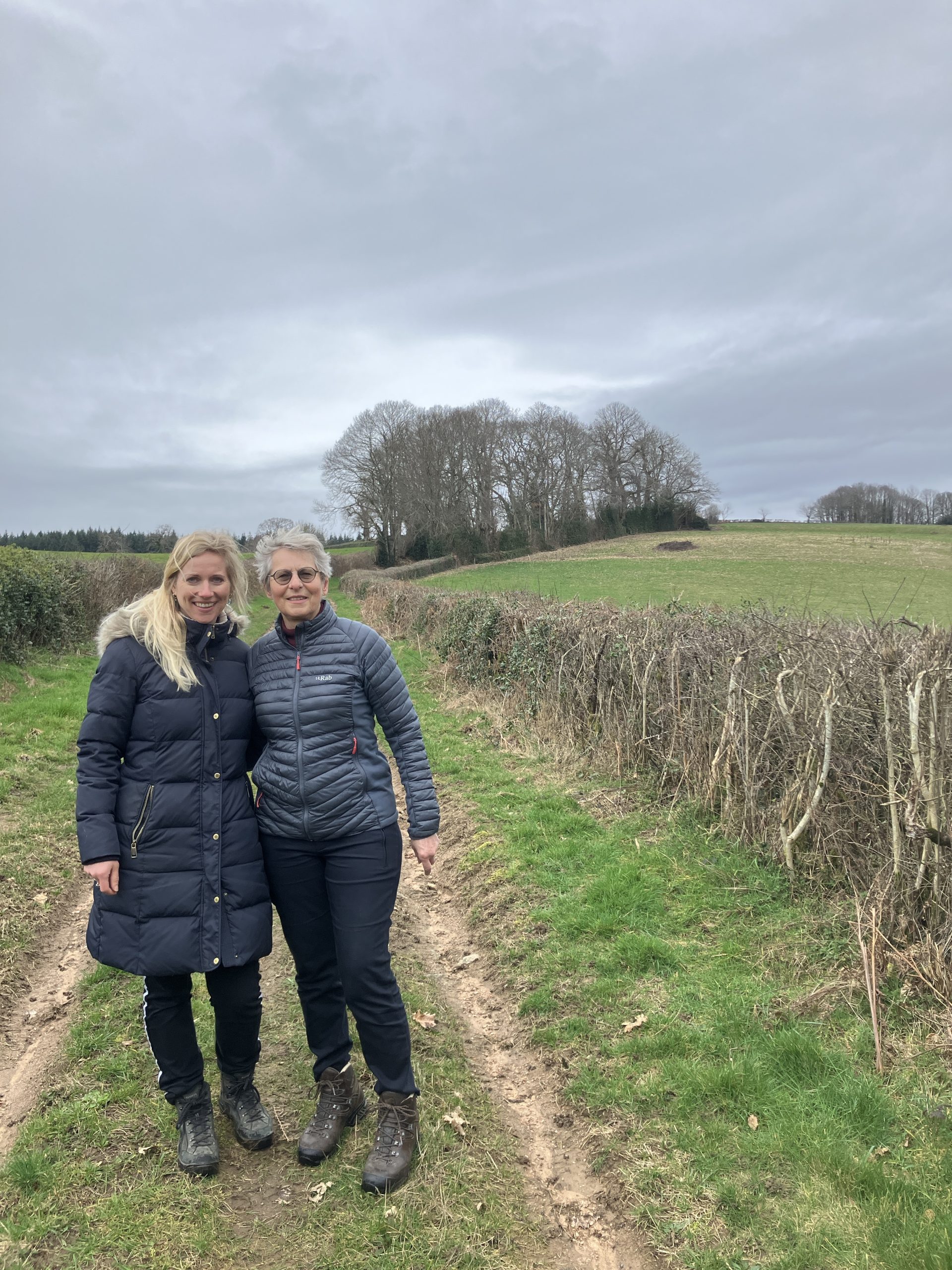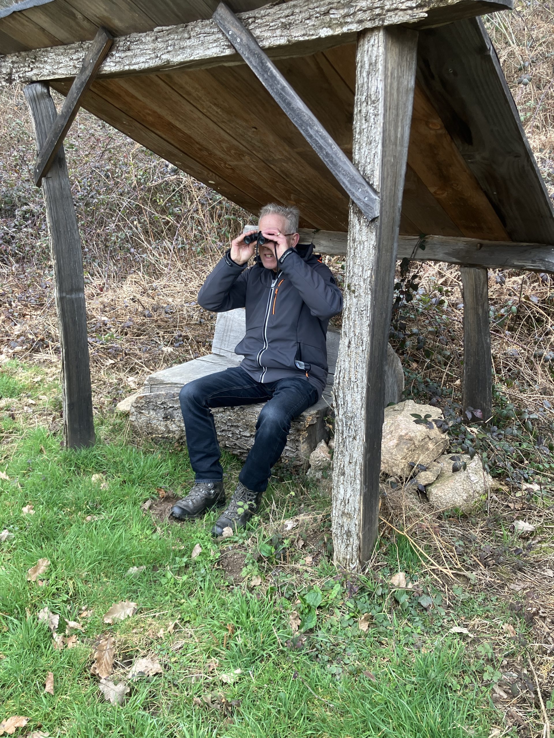 Mijn ouders hebben heerlijk geslapen en na de koffie is het tijd voor een wandeling. We hebben in december hard gewerkt, we hadden immers maar twee dagen om alles schoon te maken en te verhuizen. Dus op een rondje om het huis na en even staren uit het raam, hadden ze nog niets van de omgeving gezien. We trekken onze wandelschoenen aan en die heb je wel nodig want er zijn hier zoveel leuke paadjes. Mijn ouders hebben de verrekijkers meegenomen, ik ben benieuwd wat we allemaal tegenkomen. Als eerste doen we het rondje wat wij iedere avond lopen. Mijn ouders hebben oog voor de dierensporen. In de heggen waar openingen zitten wijzen ze mij op doorgangen waar vossen of konijntjes door heen gaan op hun routes. En als je er op gaat letten zie ik ze nu overal.