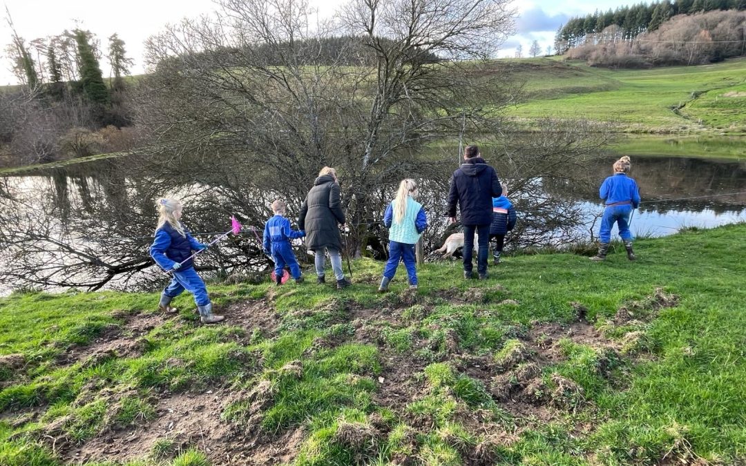 Dat is gezellig, de hele dag is er al een actieve sfeer, het was gelijk een goede reden om boven weer alle kamers te stofzuigen en netjes te maken want er moeten een paar matrassen bij. Wie slaapt waar? Wie gaat bij wie? Uiteindelijk krijgt Tessa een logee(Rik), gaat Iris met neefje Thijs bij Dennis op de kamer, en uiteindelijk wisselen ze de tweede nacht nog om. Zo is het toch eerlijk verdeeld!? Voor dat ze naar bed moeten gaan we eerst nog naar buiten! Het was gelukkig mooi weer. Rik is dol op kikkers en salamanders dus die willen ze eerst zien. Bij het meer ontdekken we dat er al enorm veel kikkerdril te vinden is. We zien ook veel kikkers dus dat belooft wat als alle dikkopjes hier straks rond zwemmen.