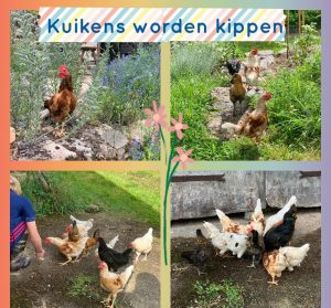 Nog een update over de kuikens… dit zijn eigenlijk geen kuikens meer. De moeder heeft ze ook “los gelaten” en zij gaat met de “grote haan” weer mee op stap. De kuikens trekken hun eigen plan. Ze worden nog wel eens terecht gewezen door de Haan, als ze blijven klieren. We hebben nog leuk nieuws! Er zijn van de week alweer twee kuikens uit het ei gekomen, dus er zijn weer nieuwe kuikens om in de gaten te houden.