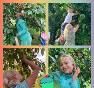 Er zijn hier 3 kersenbomen en die hangen momenteel vol met kersen! We eten dan ook kersen bij het ontbijt, de lunch en je raadt het al wat het avondeten is…