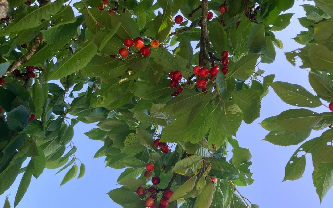 Er zijn hier 3 kersenbomen en die hangen momenteel vol met kersen! We eten dan ook kersen bij het ontbijt, de lunch en je raadt het al wat het avondeten is…