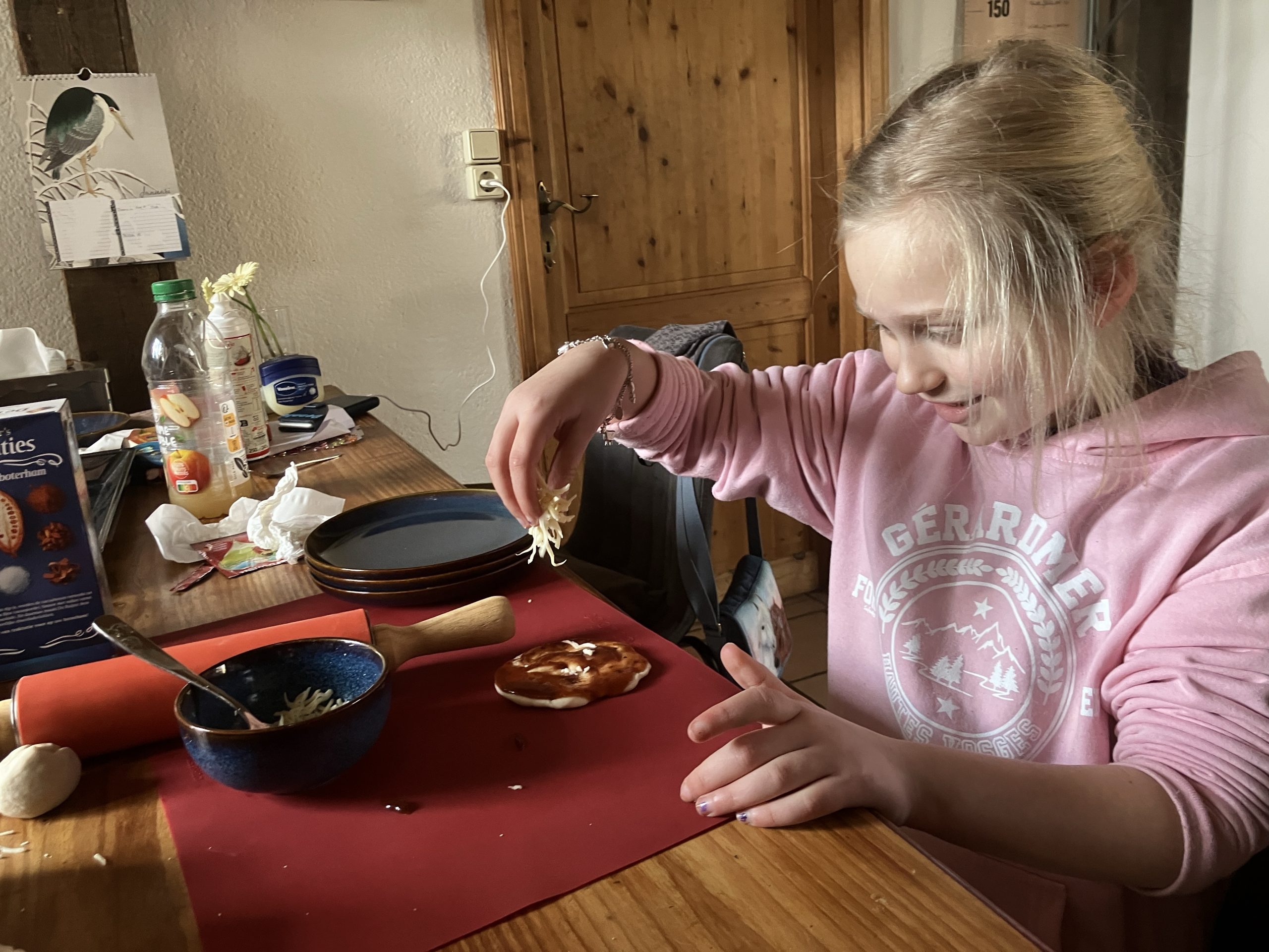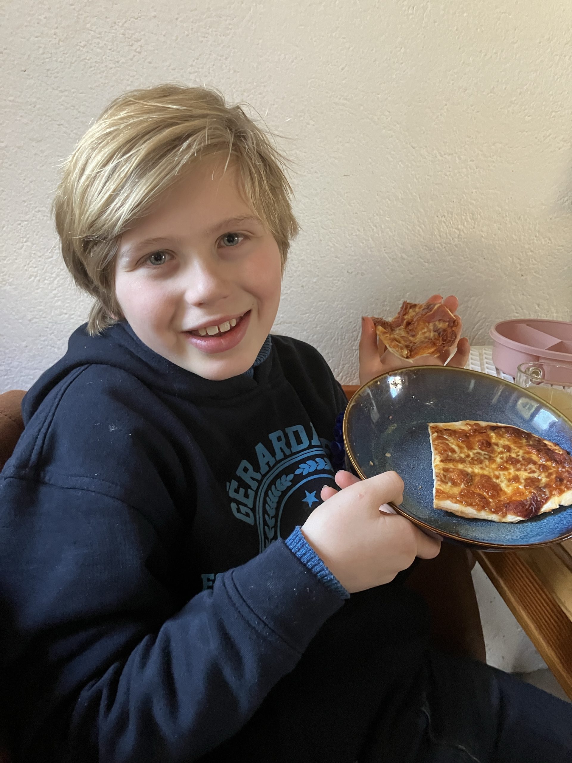 ’s Middags hebben we nog zelf pizza’s gebakken. Met de broodbakmachine had ik het deeg gemaakt. Daarna hebben ze met deegrollers dit mooi uitgerold en zo heeft ieder kind zijn eigen pizza’s gemaakt.