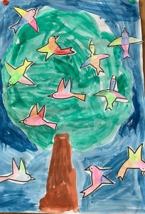 We gingen zingen met de klas, en met de hele school. Het was Fete de la musique en we hadden een eindejaarsspectacle op vrijdag 21 juni. Het ging over dieren. We hadden daar al een hele tijd over gewerkt op school. We gingen een liedje zingen met de klas. Als je hier op klikt, weet je welk liedje. We zongen ook veel liedjes met de hele school. Daarna was er ook een tentoonstelling. Er werden alllemaal tekeningen en knutselwerken getoond. Van mij was er een zwaantje te zien, wat ik had gevouwen. Ik had ook een mooie boom geverfd. Het zingen vond ik vooral leuk! Uit school ging ik me omkleden. Iedereen moest een zwarte broek aan met een gekleurd shirt, bijvoorbeeld helemaal geel. Of helemaal groen of helemaal paars. Ik koos voor een blauw T-shirt. Tessa had een oranje T-shirt aan. Dennis had een groen T-shirt aan. Mijn ouders mochten zelf weten wat ze aandeden.