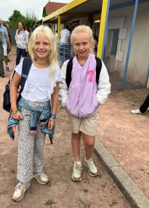 Het weekend voor de school begon kregen we al een berichtje dat de namenlijsten bij de school zouden hangen. Tessa en Iris zijn erg benieuwd welke juf ze krijgen. Bij welke kinderen kom je in de klas, welke combinatiegroepen zijn er gemaakt. Tessa heeft dezelfde juf als vorig jaar! Daar is ze heel blij mee. Ze ziet gelukkig ook veel vriendinnen op de lijst. Iris krijgt een nieuwe juf, dus het wordt nog een verrassing hoe zij zal zijn. Wel is het ook een kleine klas, 23 kinderen. Ze kent ook veel kinderen van vorig jaar. Ze gaat naar CE1. Dit is echt heel moeilijk om uit te spreken trouwens, probeer maar eens 😉 En Tessa zit in CM1, dat spreek je een stuk makkelijker uit.