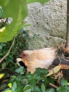 We ontdekten naast ons huis een nest met eieren! Er zit al een hele tijd een kip te broeden. Ik had nog bramenstruiken weggeknipt en niks gemerkt. Jeroen had wel opgelet want hij zag ineens de kip zitten! En al snel waren er ook kuikentjes. Grappig dat het 2 lichte kuiken zijn en 2 donkere. De andere eieren zijn niet uitgekomen dus die hebben we weggegooid. Zullen dit de laatste kuikens van het seizoen zijn?