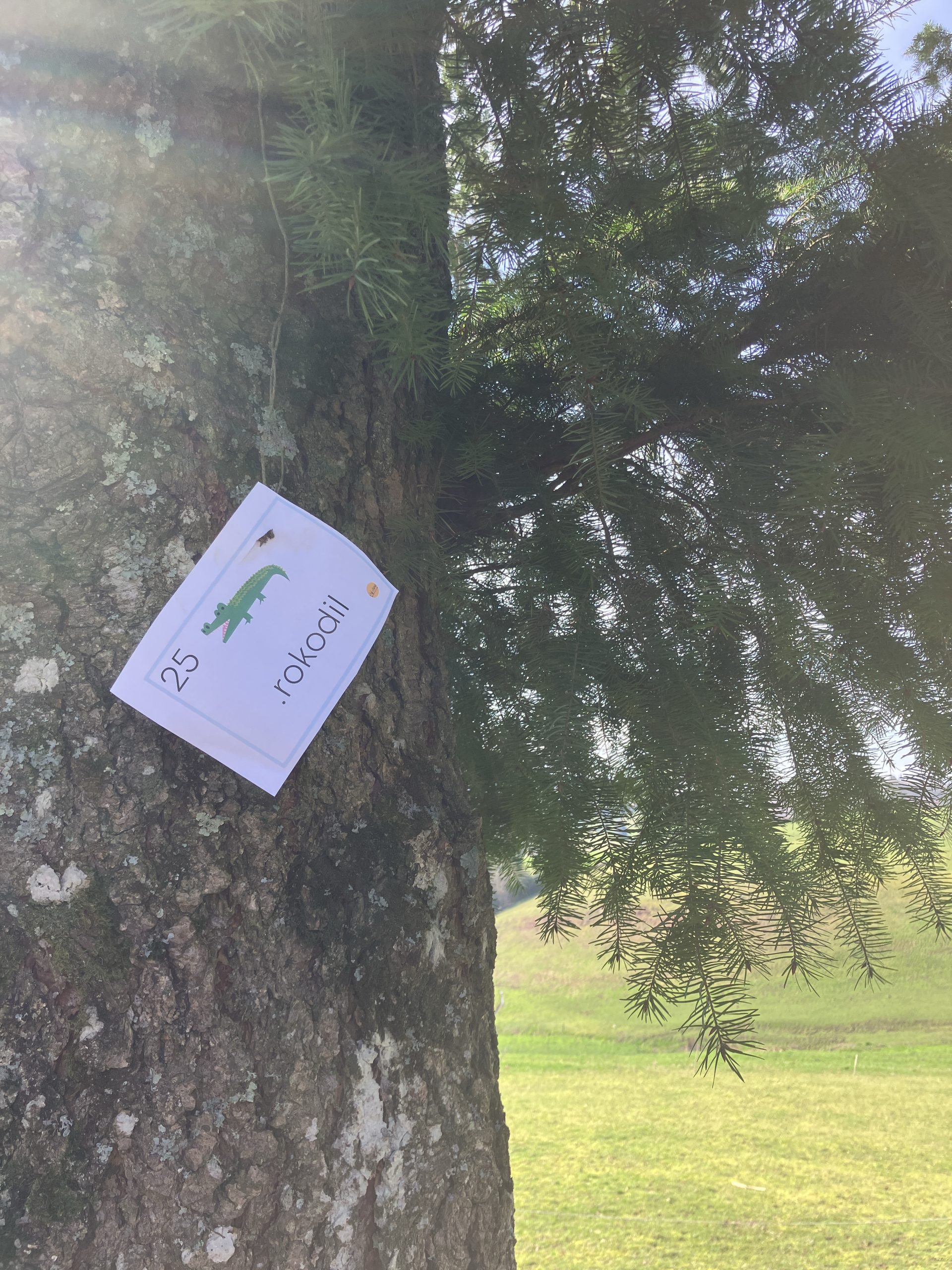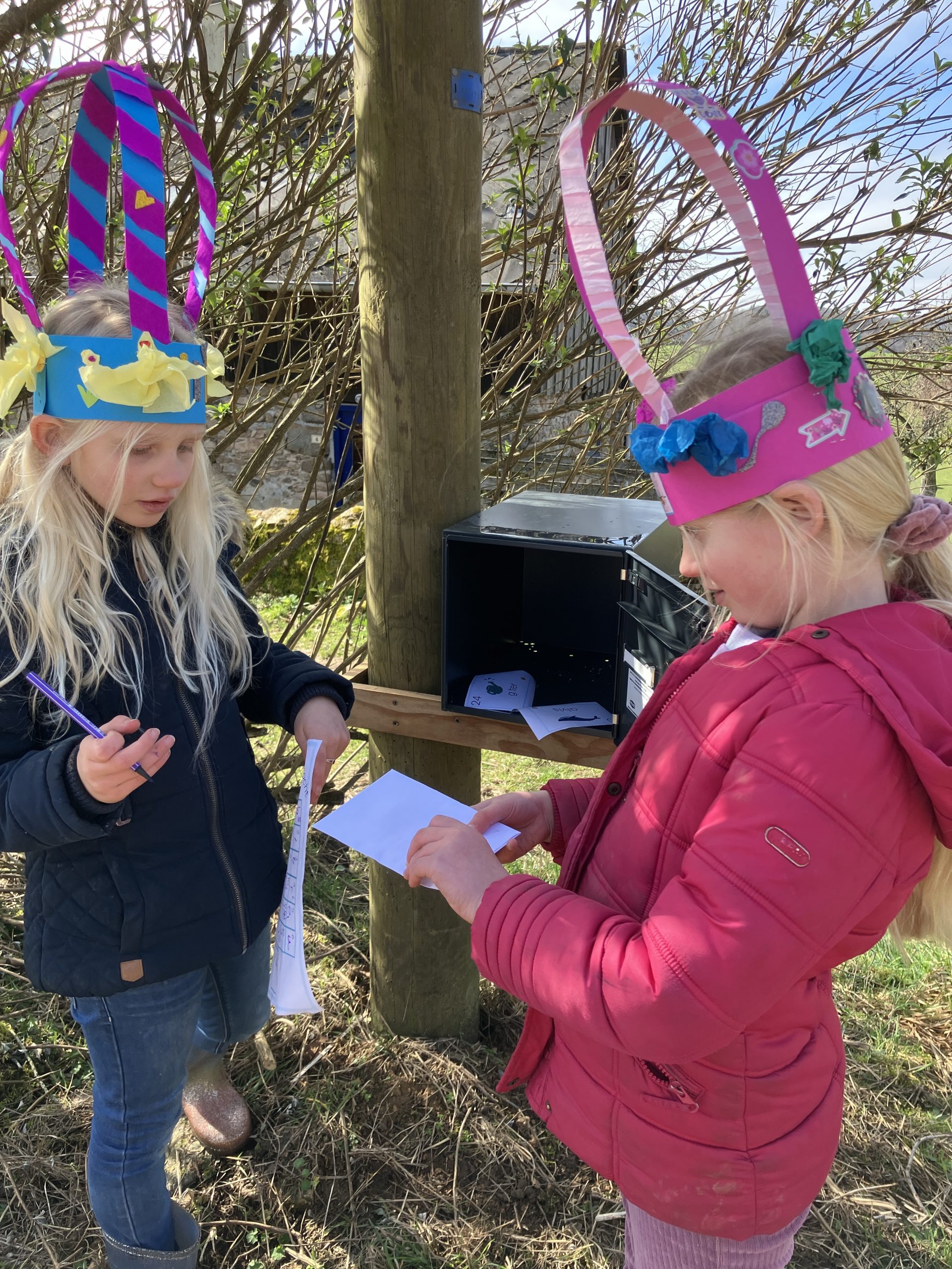De volgende dag was het dus zover! Toen begonnen we met het maken van een feestmuts. Mama had buiten allemaal briefjes op gehangen. Daar stond een plaatje op en het woord wat er bij hoorde. Maar de eerste letter, staat er niet bij. Die moet ik opschrijven. Er waren wel 40 kaartjes. Toen ik alle letters gevonden had, kon ik de code kraken met het de letters die ik had gevonden. Weet je wat het woord was? Het was… Letterdiploma!!