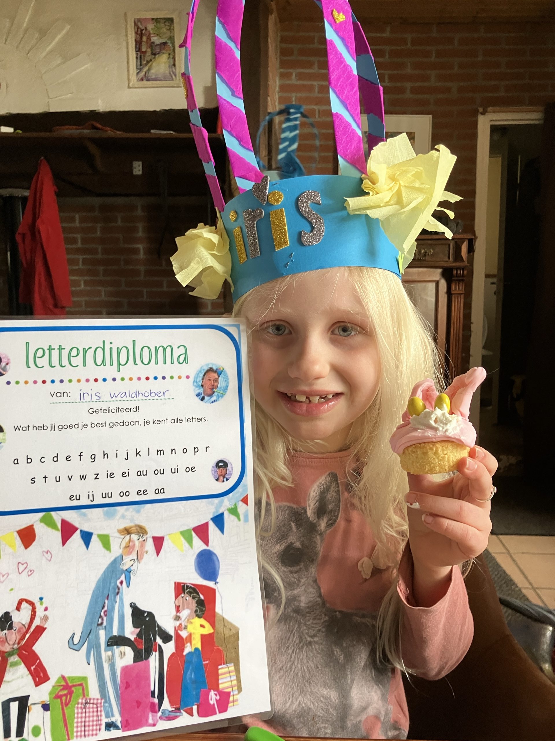 Binnen gingen we de cakejes versieren en kreeg ik mijn letterdiploma.