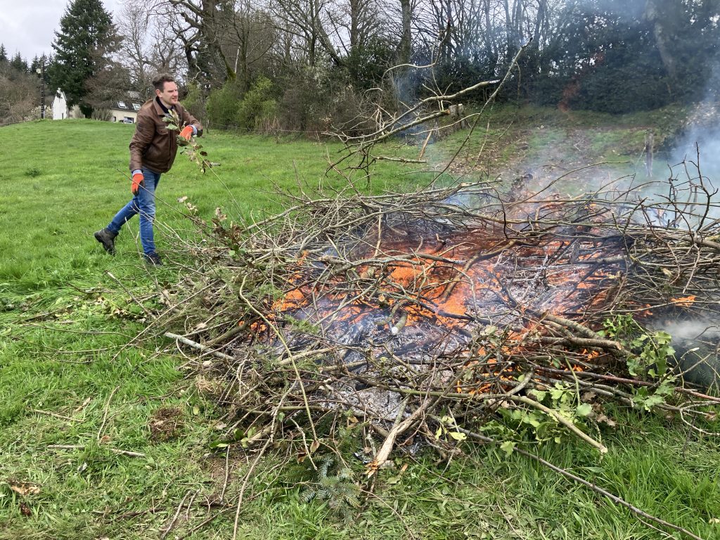 Het zou veel regenen met Pasen hier in Frankrijk, uiteindelijk viel het weer wel mee. Voor de zekerheid hebben we het “paasvuur” eerder gehouden. Er was nog een stapel takken die verbrand moesten worden, en een vuurtje is gewoon super leuk! Op de foto’s zie je het niet zo terug, maar het was toch een aardige berg. Vooral niet te dichtbij komen -wat soms met takken opgooien toch gebeurde-, dan voelde je meteen dat je voorhoofd heet werd.