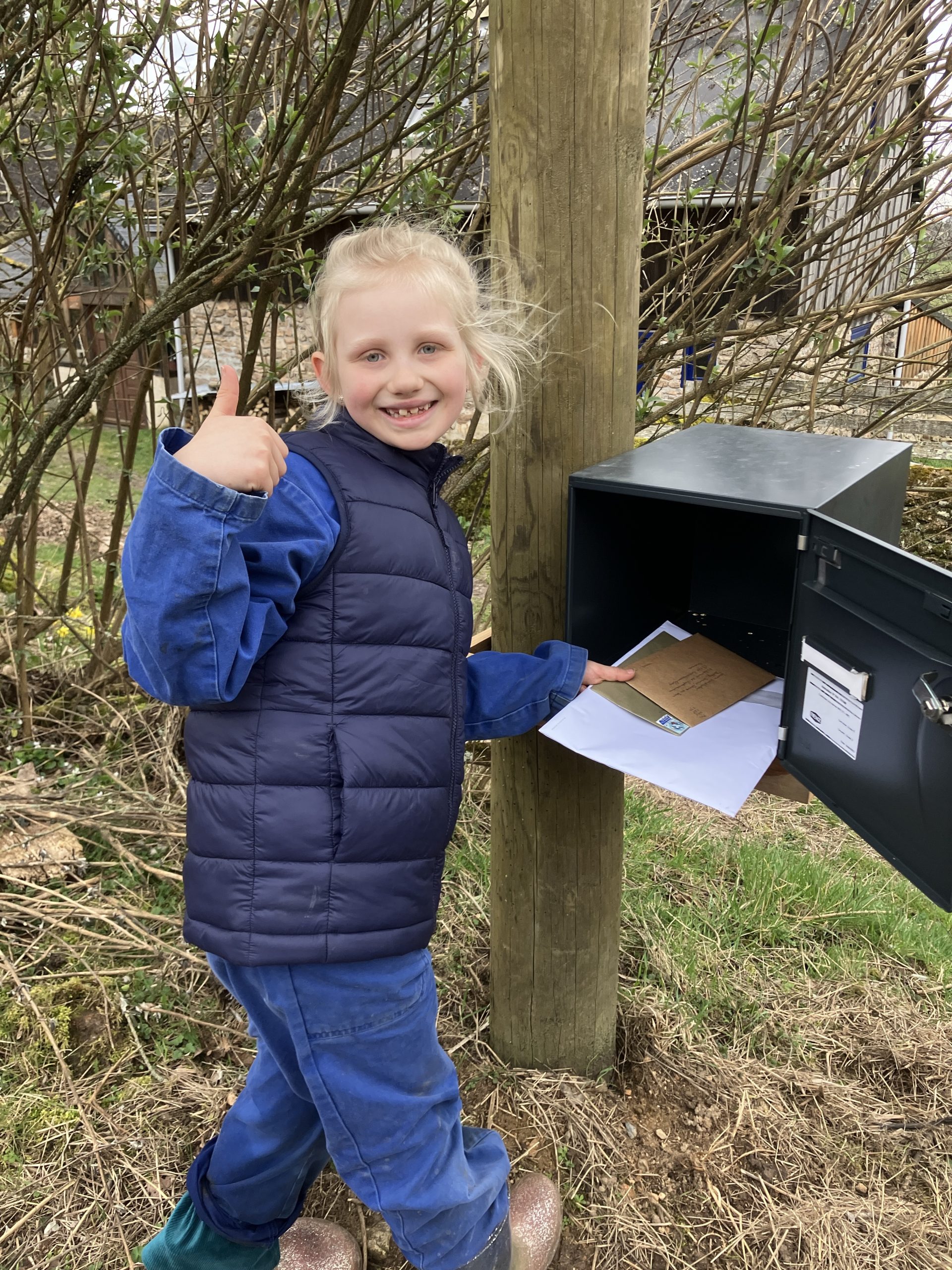 Naar de brievenbus gaan is een feestje! Wel het sleuteltje meenemen, anders moet je nog een keer lopen. Wie mag er post halen? Iris was vandaag de gelukkige en er was verjaardagspost! Dat is toch leuk! Die week kwam er nog meer post, zo bleef Jeroen de hele week een beetje jarig. Super leuk om steeds post te krijgen. De postbode weet onze brievenbus goed te vinden, toch komt ze heel soms de post nog aan huis brengen. Tessa had pas een hele grote envelop gekregen, die werd dus speciaal tot de deur gebracht, heel leuk!