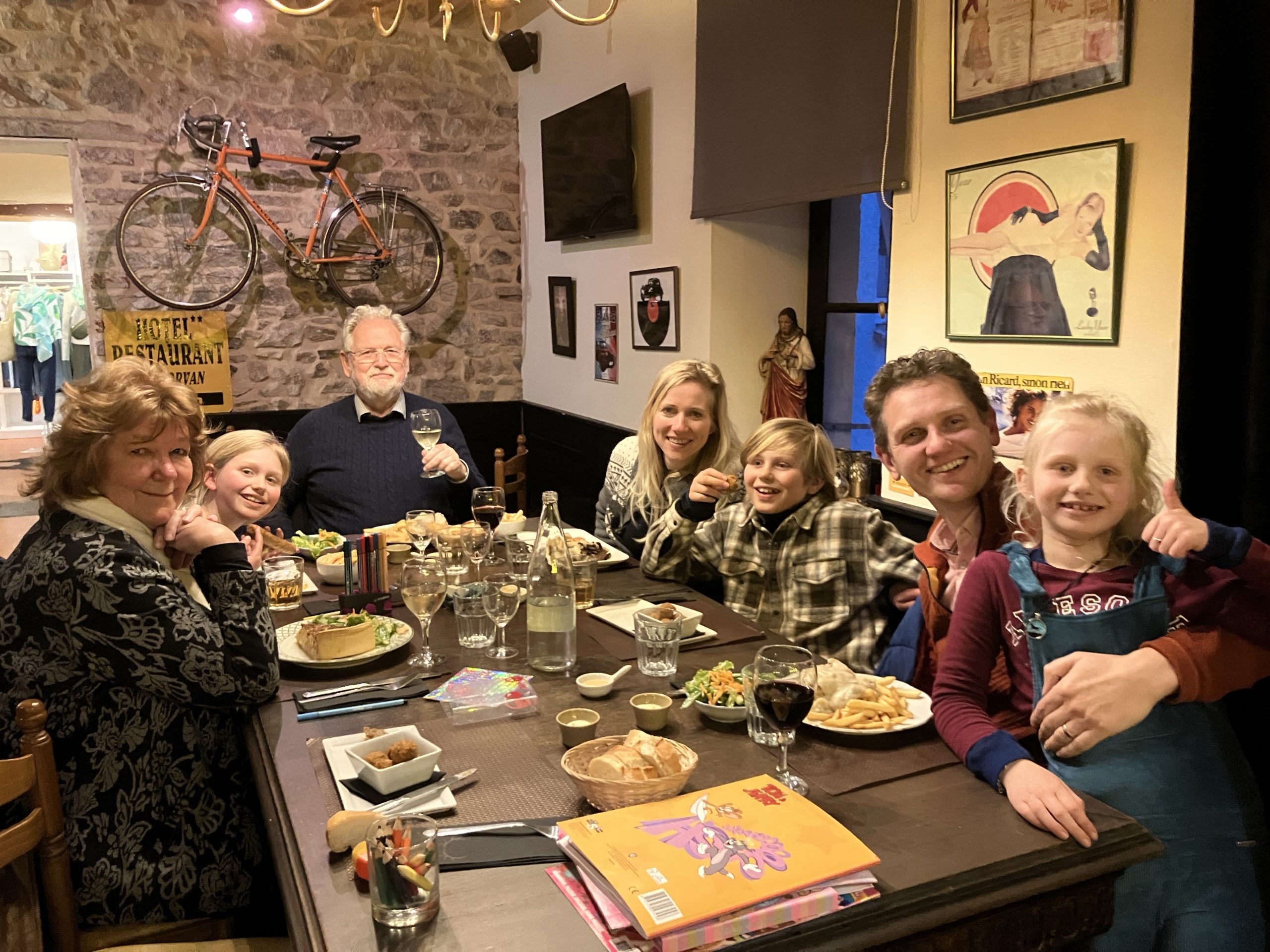 Jeroen is in maart jarig en dat is wel reden voor een feestje! Jeroen zijn ouders komen het weekend bij ons op bezoek, we hebben er zin in. Zij zijn erg benieuwd naar ons plekje. Uit school rijden we gelijk door en ontmoeten we hen vlakbij het hotel. We lopen gezellig door het stadje en er is nog kermis ook. Dat vinden de kinderen leuk, lekker botsen in de botsauto’s en daarna lekker uiteten bij een leuke bistro. Tessa herkent de mevrouw die in ons dorpje een bakkerij heeft, dan zal het wel lekker zijn! Leuk dat we al mensen gaan herkennen 😉