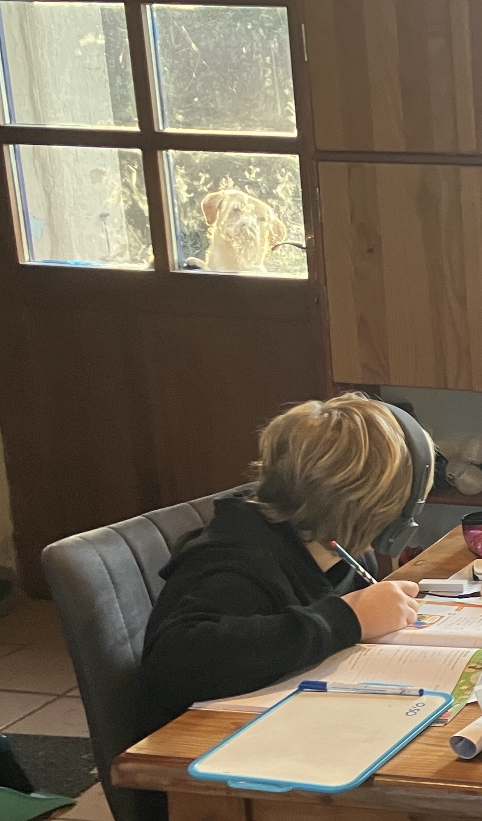 Vanmorgen kwam Louis nog even kijken waar de kinderen bleven. Helaas voor Louis, het schoolwerk moet eerst af, daarna komen ze hoor!
