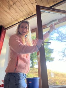 Mama is aan het ramen lapen