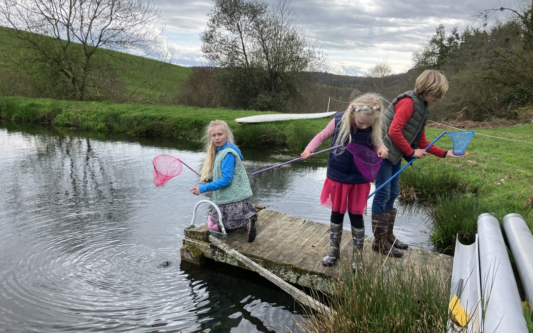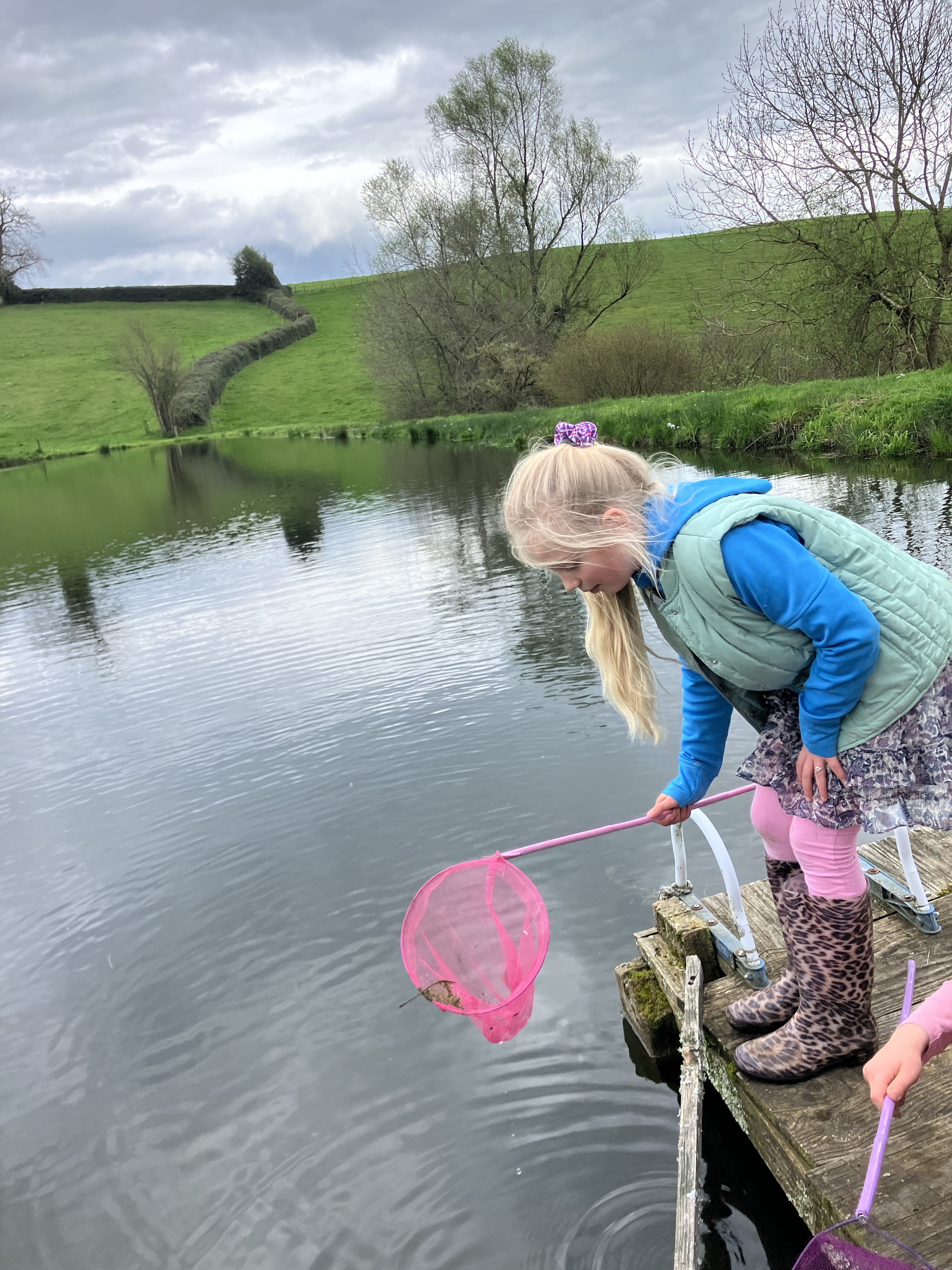 In het weekend werd het weer warm weer! We gingen toen zelfs met hele gezin en Lambert ging ook zwemmen. We gingen ook op de surfplank zitten en zo rondjes varen over het meer. We konden heel veel kikkervisjes zien zwemmen. Het zijn nog dikkopjes, want ze hebben nog geen pootjes. Je ziet ze ook in het emmertje.